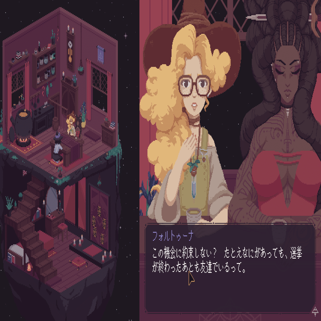 あなたは小惑星に流刑となった魔女「フォルトゥーナ」となり、自由を取り戻す望みをかけて禁断の存在と契約を結びます。200年ぶりに魔女の友人と繋がりを持ったり、見知らぬ魔女と出会ったりしながら、自分で作成したカードを使って彼女たちの過去と未来を読み解きましょう。この宇宙の深淵を覗く中で、あなたは次第にコヴン(魔女の集団)を取り巻く複雑な利害関係や、宇宙の魔女社会の運命を左右する政治的な流れに巻き込まれていきます。steam